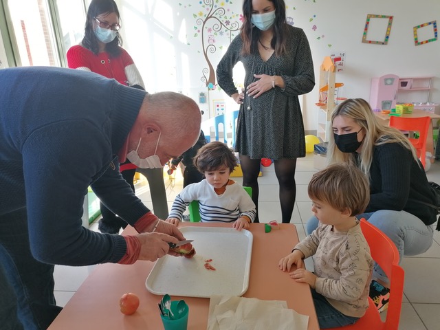 Dans le cadre de la Semaine du goût (qui avait lieu cette année du 11 au 16 octobre) , Gabriel, Sasha et Seto ainsi que leurs parents ont pu profiter, dans les locaux du Centre Social, d’une jolie initiative proposée par le LAEP (Lieu d’Accueil Enfants Parents).