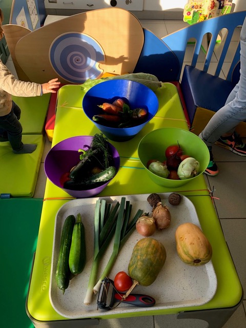 En collaboration avec François, maraîcher – qui livre chaque mardi soir, rue de Luzarches, des paniers de légumes bio aux adhérents de l’AMAP (Association pour le Maintien d’une Agriculture Paysanne) – et d’une amapienne bénévole, Annie, les enfants ont découvert en s’amusant de nouveaux goûts, de nouvelles textures, de nouvelles couleurs. Au menu de cette matinée gourmande, des pommes sous toutes leurs formes (crues ou cuites), des courgettes (qu’on épluche ou pas!), des poivrons (qui sont vraiment si « doux ») et autres betteraves (attention, ça tache…).