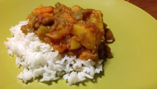 – Coupez les haricots verts en tronçons, puis incorporez-les à la préparation avec les tomates et laissez mijoter de 2 à 4mn. Retirez le laurier, ajouter la coriandre, salez, poivrez.
